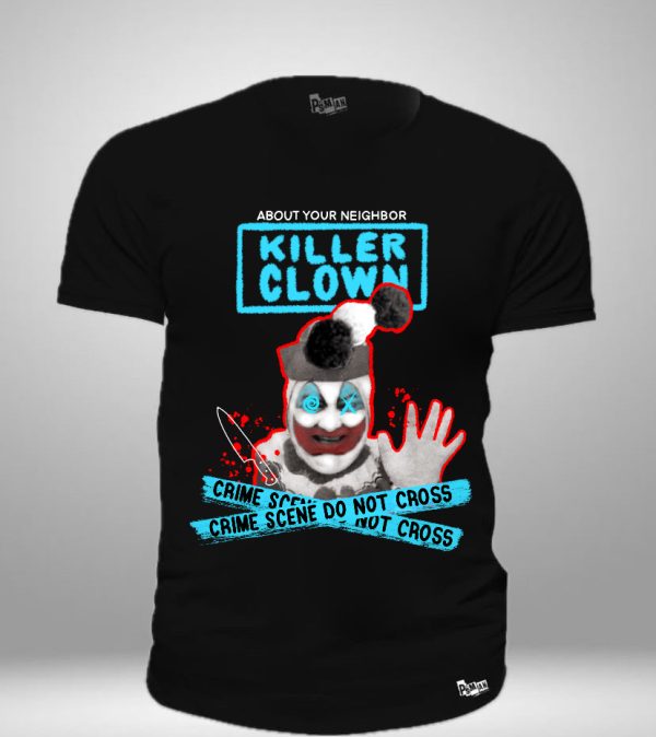 Camiseta “CLOWN” especial Halloween Inspirada en la escalofriante historia real del infame «Payaso Asesino», un psicopata que sembró el terror en Estados Unidos en la década de los 70s.